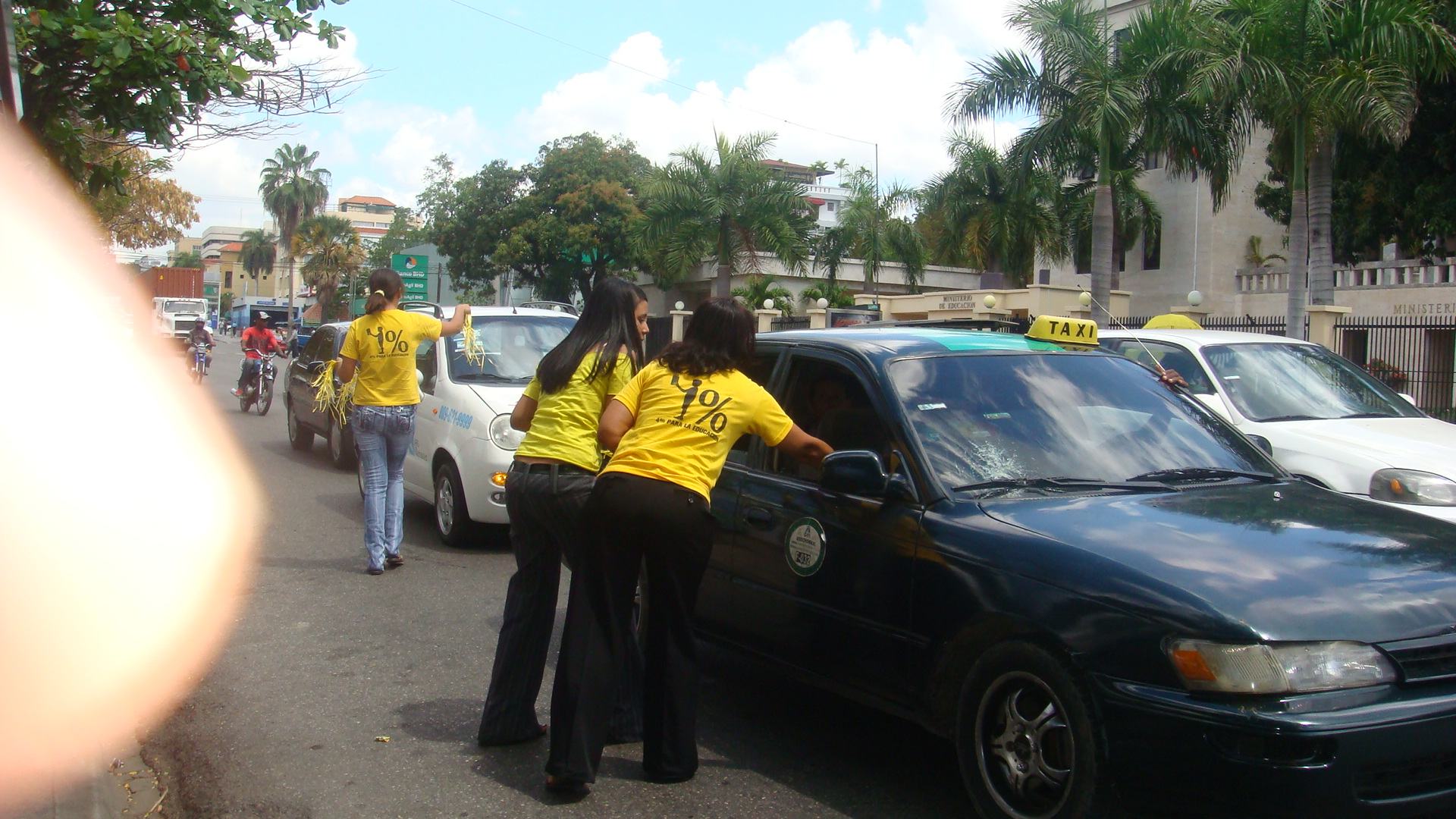 Los miembros pusieron tiras amarillas a los vehículos que transitaban por la zona.